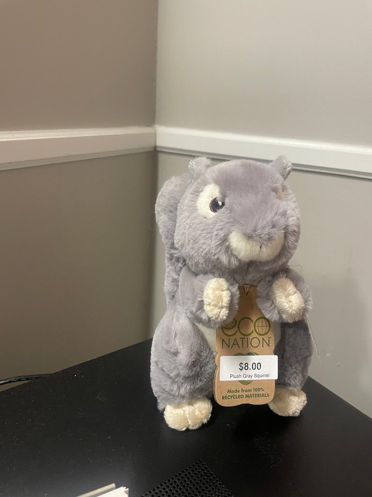 Enjoy this plush gray squirrel, celebrating the Olean area's unofficial mascot. Made by Eco Nation from recycled materials.